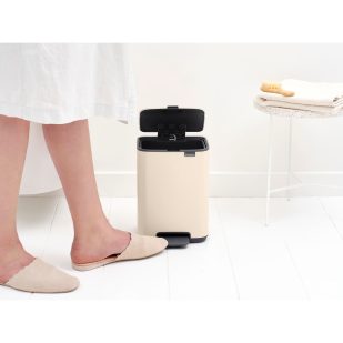 Den svarta pedalhinken från NewIcon-serien har en kapacitet på 3 liter och passar utmärkt i mindre utrymmen. Dess moderna design gör den både stilren och funktionell för badrummet eller kontoret.