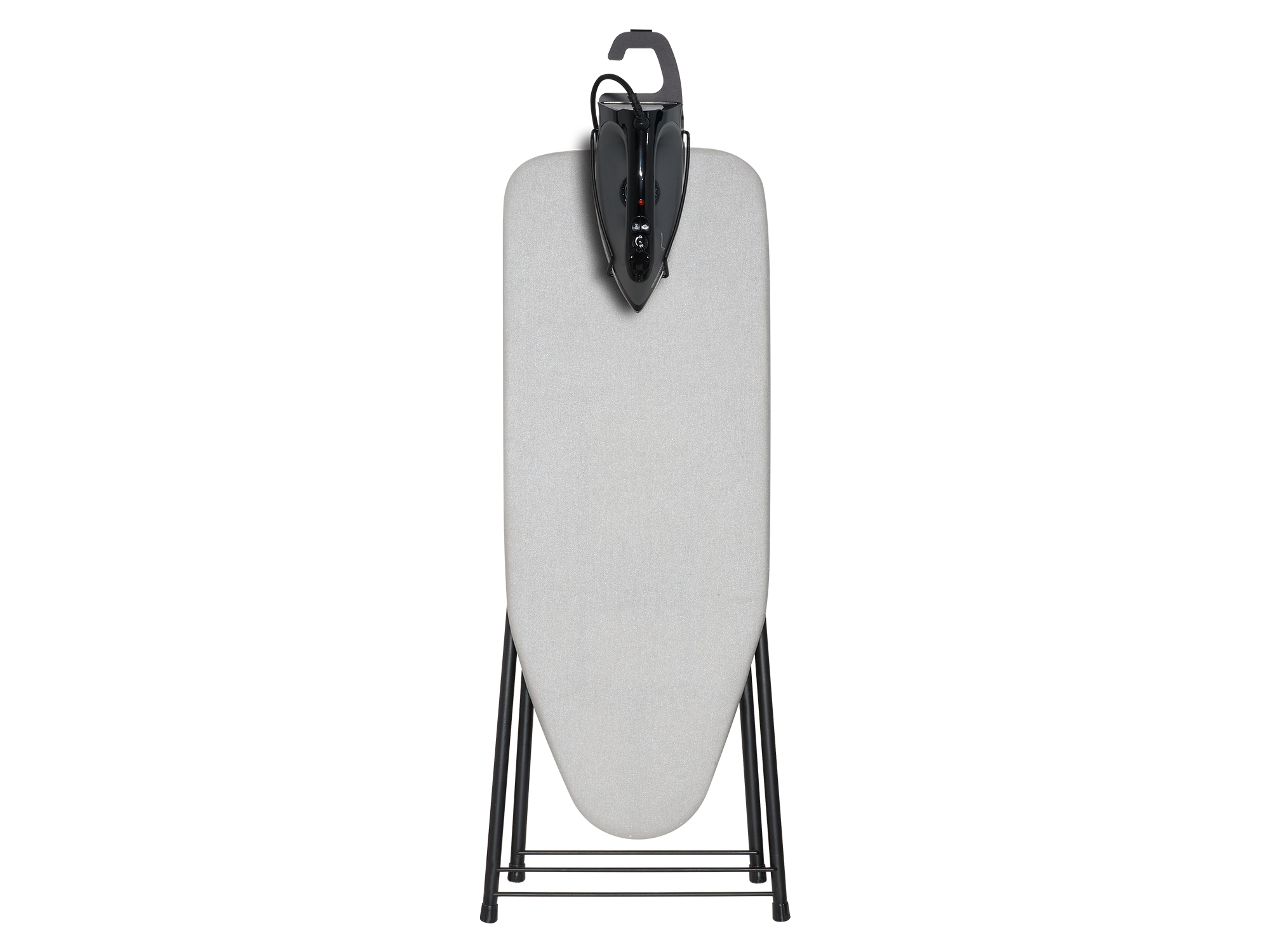 Med denna modell får du en strykbräda i full storlek, och med strykjärnshållare som kan skjutas åt sidan.